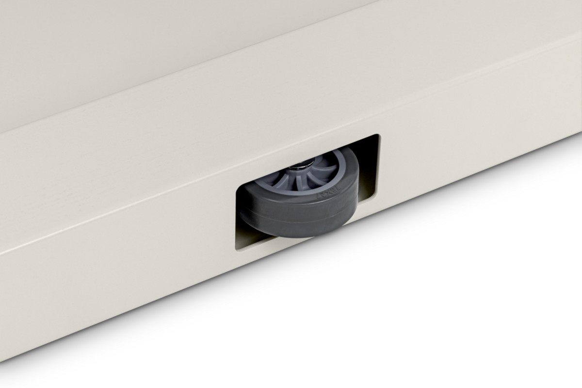 - Lehká a kompaktní konstrukce je navržena pro mobilní použití. Váhu lze snadno přemisťovat pomocí dvou koleček a dvou madel, přičemž nevyžaduje velký skladovací prostor. Přesné ustavení váhy zajišťuje integrovaná libela. Zobrazovací jednotka je standardně vybavena nástěnným držákem pro flexibilní umístění.